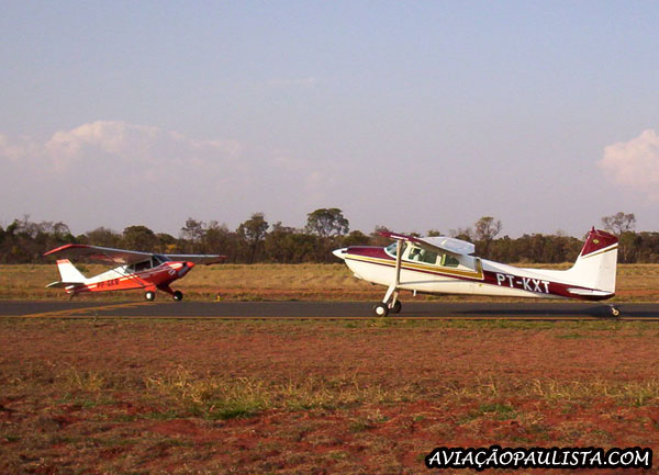 A esquerda, o Aero Boero 115, PP-GKB, do Aero-clube de Araraquara e a direita o Cessna 180B, PT-KXT, do comandante Costa na taxiway.