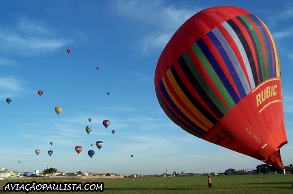 Balões se encaminhando para o alvo, enquanto o Rubic III, PP-XBY, se prepara para decolar. (23/06/2007) |