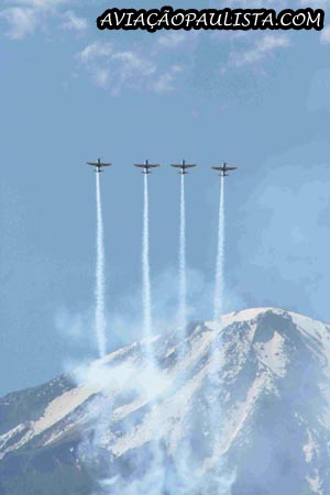 Quatro Tucanos da Esquadrilha da Fumaça subindo para fazer um looping, em Arequipa, no Peru. (05/08/2007)
