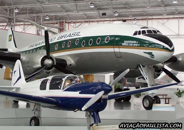 Em primeiro plano, Nord Aviation Norecrin, fabricado em 1948, e Lockheed L-049 Constellation com a pintura da Panair, ex-KLM, fabricado em 1946.